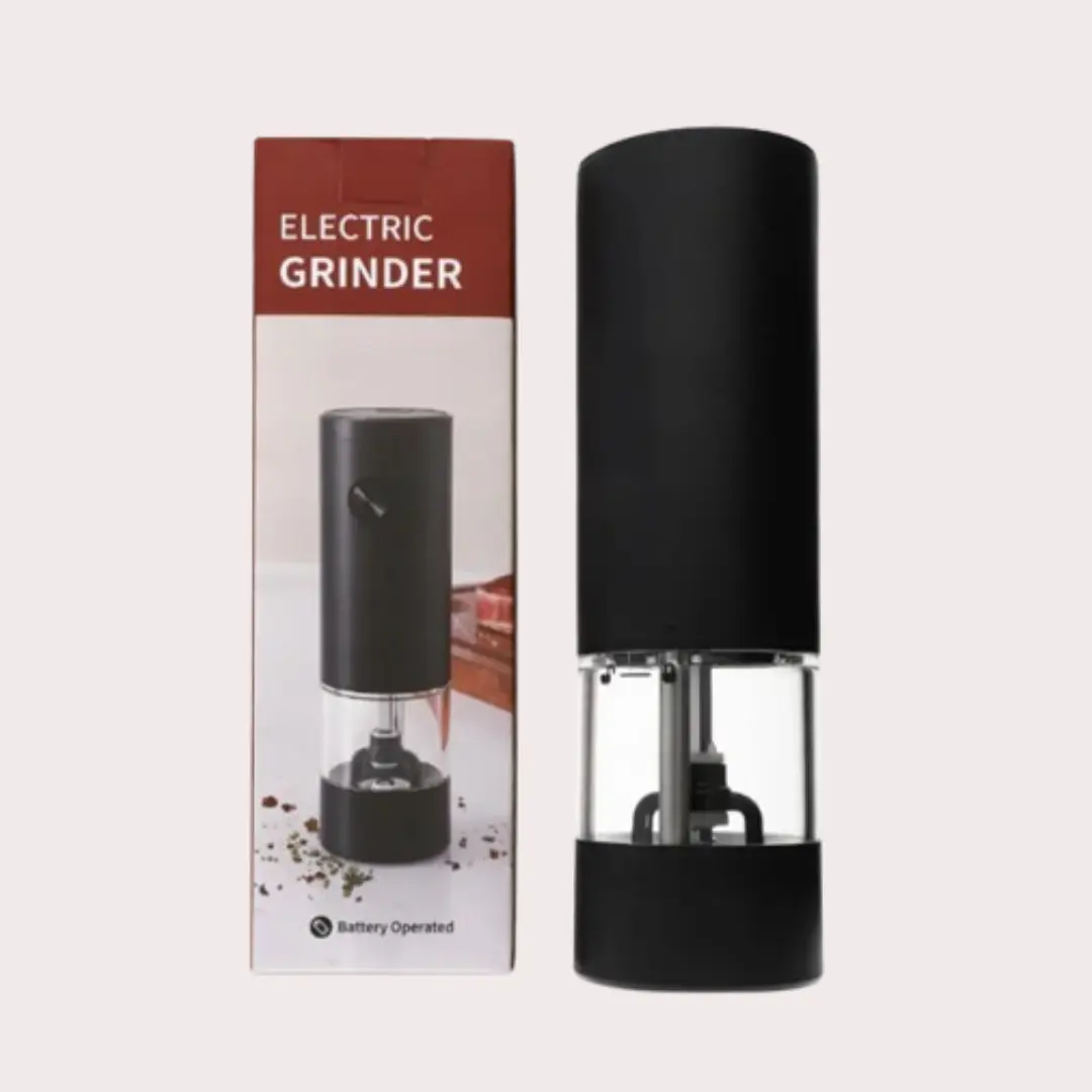 Práctico y moderno molinillo eléctrico ideal para condimentar tus comidas con un solo toque.