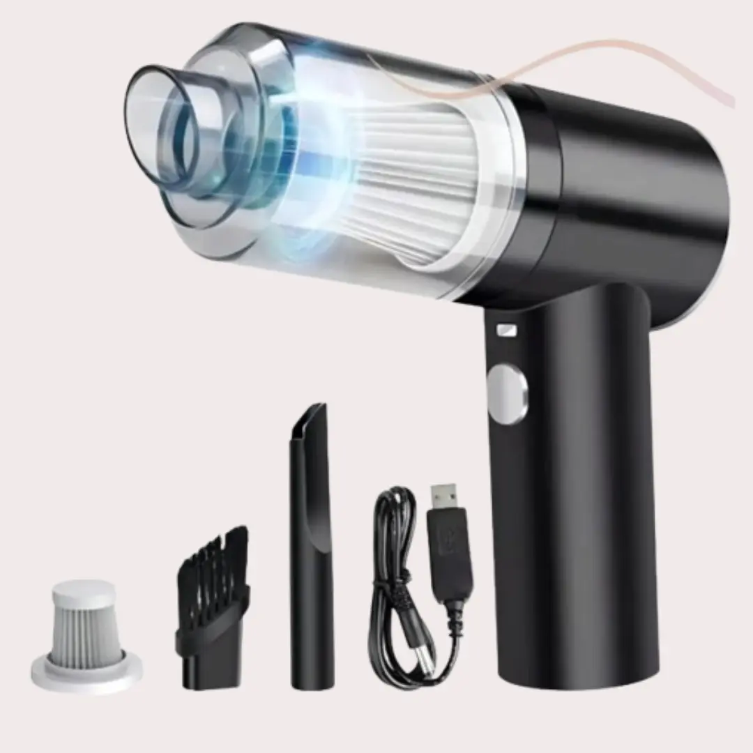 El miniaspirador 2 en 1 es la solución perfecta para mantener tu coche siempre limpio y sin polvo. Con su potente succión portátil, puedes eliminar fácilmente la suciedad y los residuos de cualquier superficie. La aspiradora viene con una boquilla especial para llegar a los rincones más difíciles de limpiar. Además, su función inalámbrica te permite usarla en cualquier lugar, sin preocuparte por los cables o enchufes. El miniaspirador 2 en 1 es nuevo y está disponible en negro. Aprovecha esta oportunidad y mantén tu coche siempre impecable.