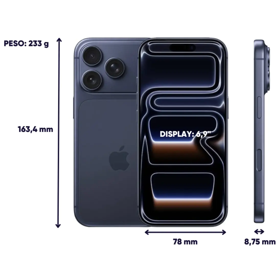 El iPhone 17 Pro Max representa lo más avanzado en tecnología móvil. Combina potencia extrema, el sistema de cámaras más completo de la línea y la mejor autonomía disponible en un iPhone.